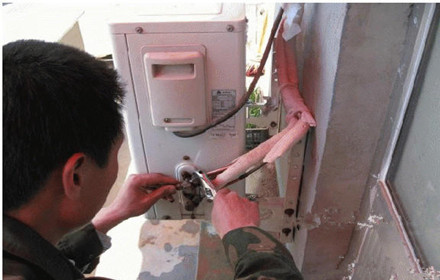 前期硬件安装完毕,后一道工序就是排出管路内的空气。这也是一道关键的工序。 所谓排气,就是用氟里昂将管道的空气*出去。注意:不能排多了,也不能排少了。排多了,会造成亏氟,制冷效果差;排少了,残存空气将与氟里昂融合,使机内气压升高,“养”成空调器动不动就停机的坏毛病,根治起来*其麻烦(需要先将氟全部放掉,再用专门仪器把管路抽成真空态,*后再重新加氟)。 排出管路内空气除了要注意适量,还要防止尘土进入。一般情况下,应该分三次操作,每次3至4秒。*后则开机运行,并用温度计测量风口温度,温度在10摄氏度至12摄氏度为佳。风口温度超过12摄氏度,表明管路的空气排过了,有点亏氟,使制冷力变弱,所以风口温度偏高;反之,则容易使空调停机。 再说一条,安装空调不能忽视电气安全问题。 空调是耗电较大的家电,安装使用空调前必须慎重选择插座。一般标称输出功率1匹、2匹的输入功率约为700W至1500W,所以,只需要10A的插座即可。但如果添置了大功率的柜机,就务必要选择专业的插座。。 电源线路应安装漏电保护器或者空气开关等保护装置。空调器与房间内电气布线的连接不得随意更改。空调器的安装还应有良好的接地设施。
